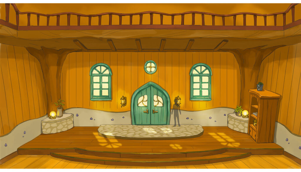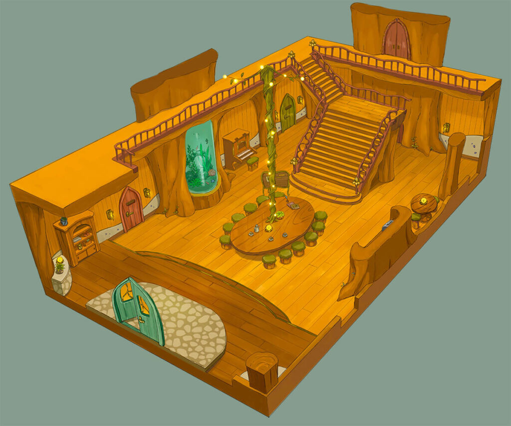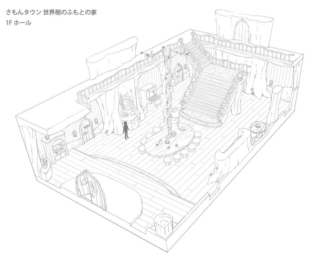 バーチャルシティ「さもんタウン」にて、「世界樹のふもとの家」の内装デザインを担当いたしました。
